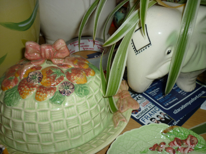 Here they are happily back where they should be. The domed dish infront of them was given to me by my Nan because it has strawberries on it. It was a wedding present to her and my Granddad in 1935 from a relative in America and bizarrely it arrived with the dome intact but the dish broken.